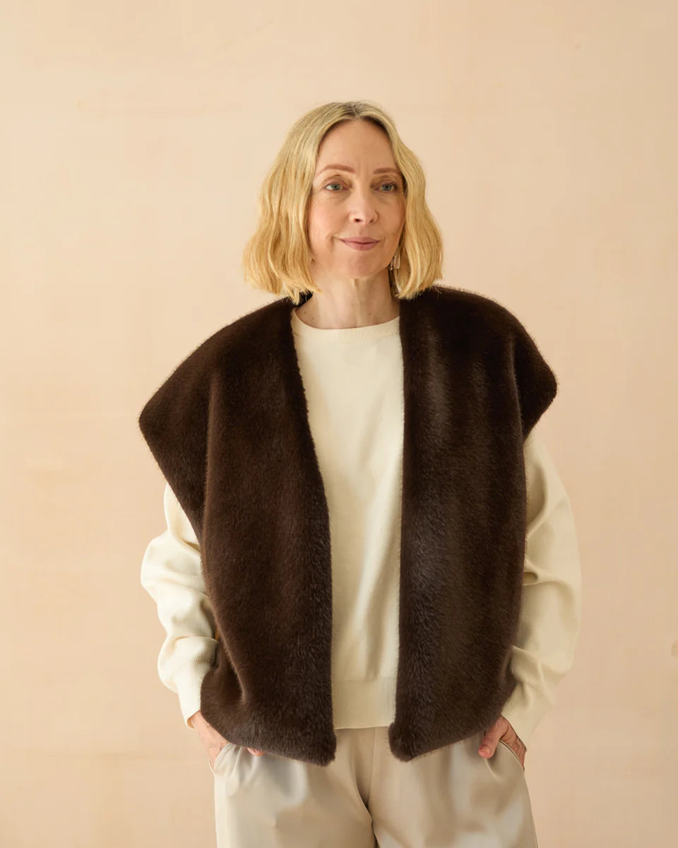 Claire Faux Fur Gilet in Rich Cocoa by The Nook