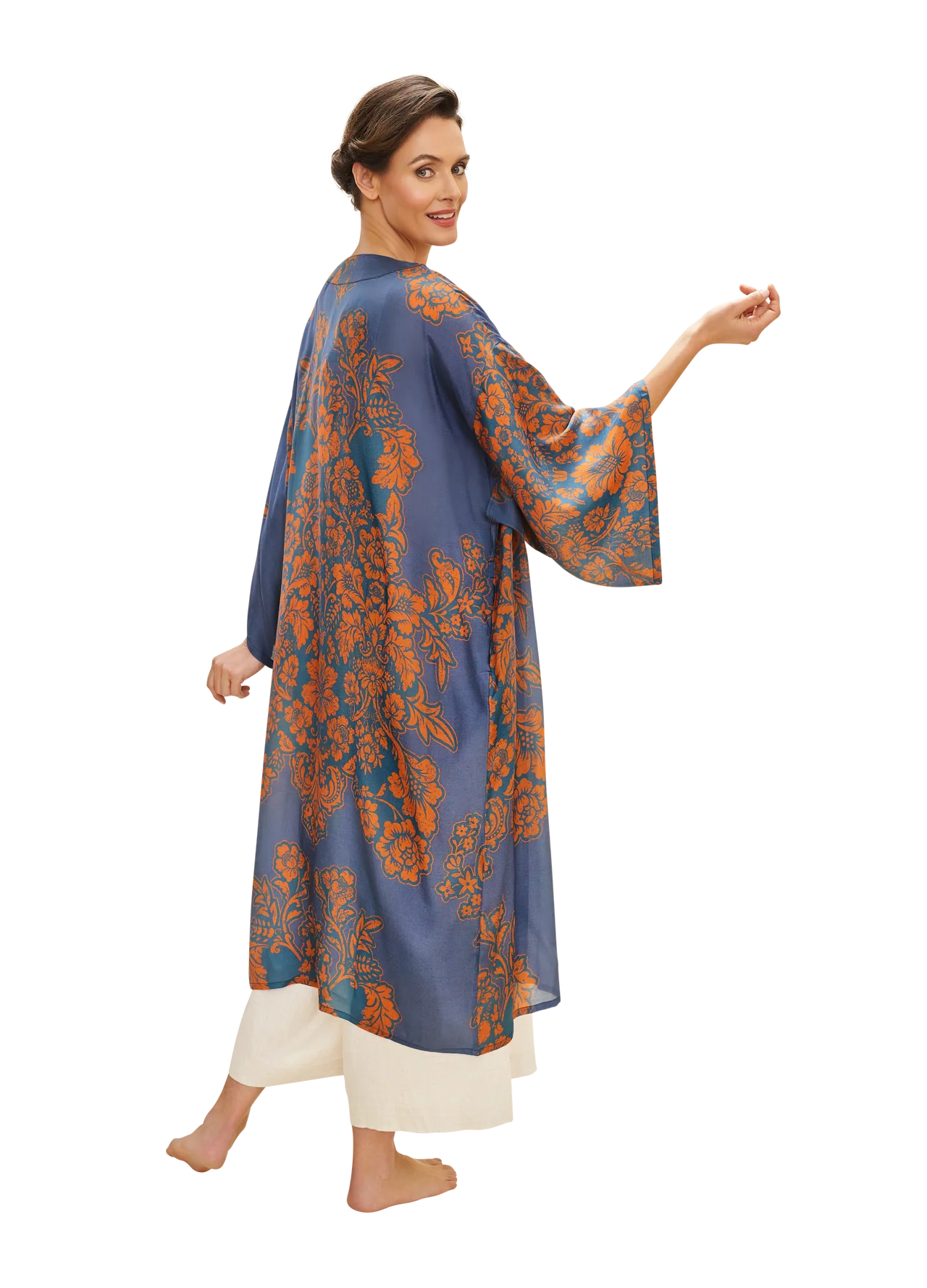 Denim Tapestry Design Long Kimono Gown by The Nook