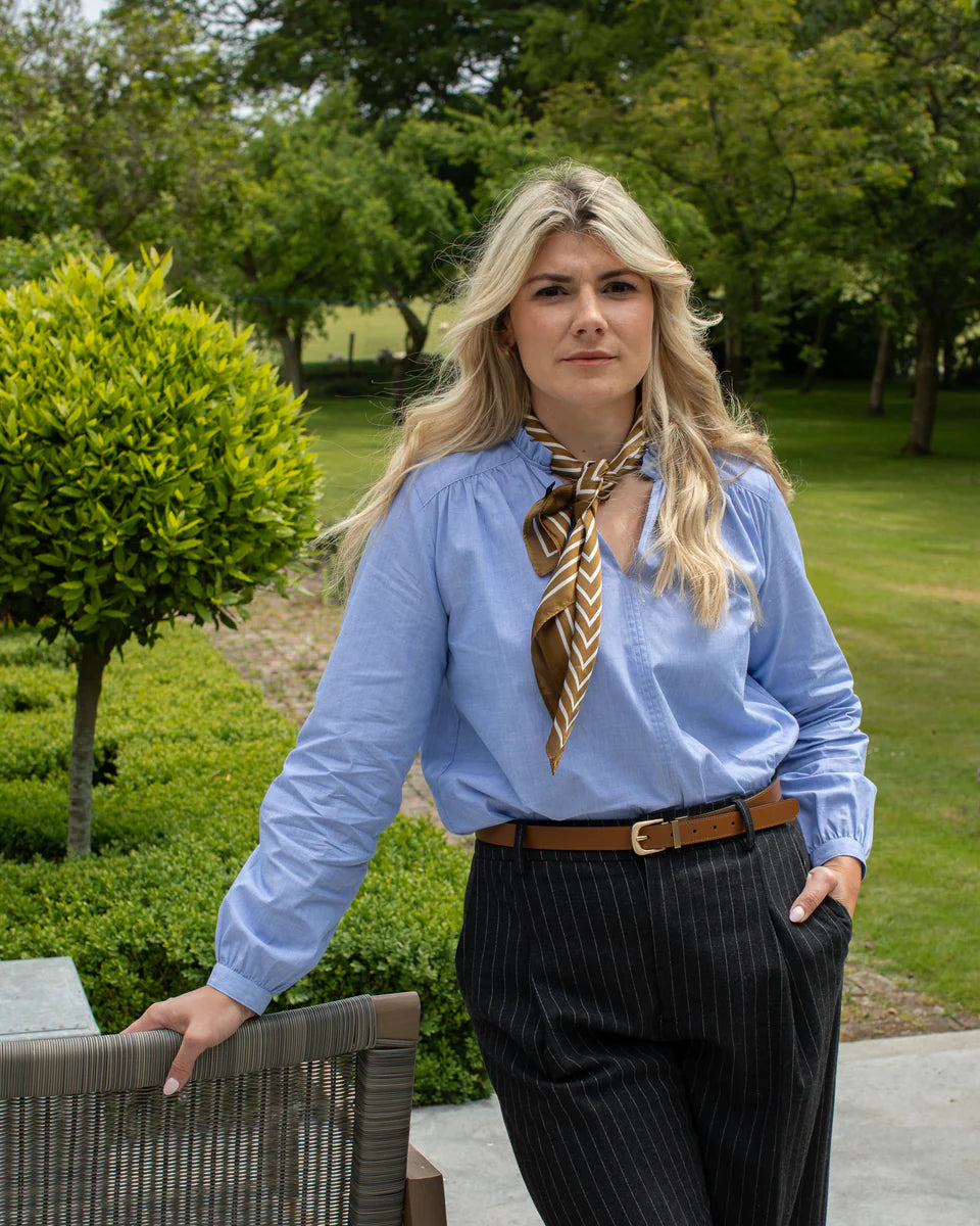 Effie scarf is a is a satin look scarf with a geometric pattern. A subtle olive green allows for versatility and multiple styling opportunities. A multifunctional and versatile must have accessory.