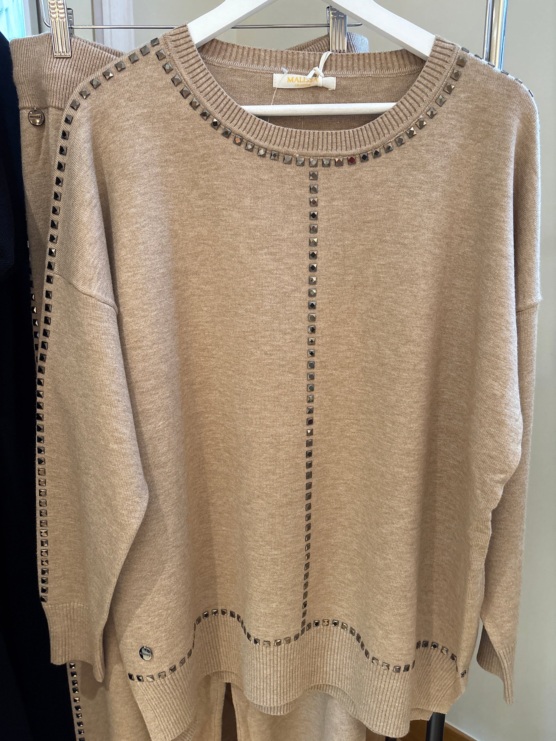 Stone knitted round neck jumper with square studs - one size - The Nook